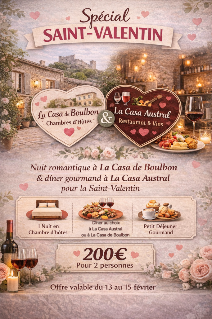 La Casa de Boulbon et La Casa Austral s'associent pour vous proposer une soirée romantique à la Saint Valentin :