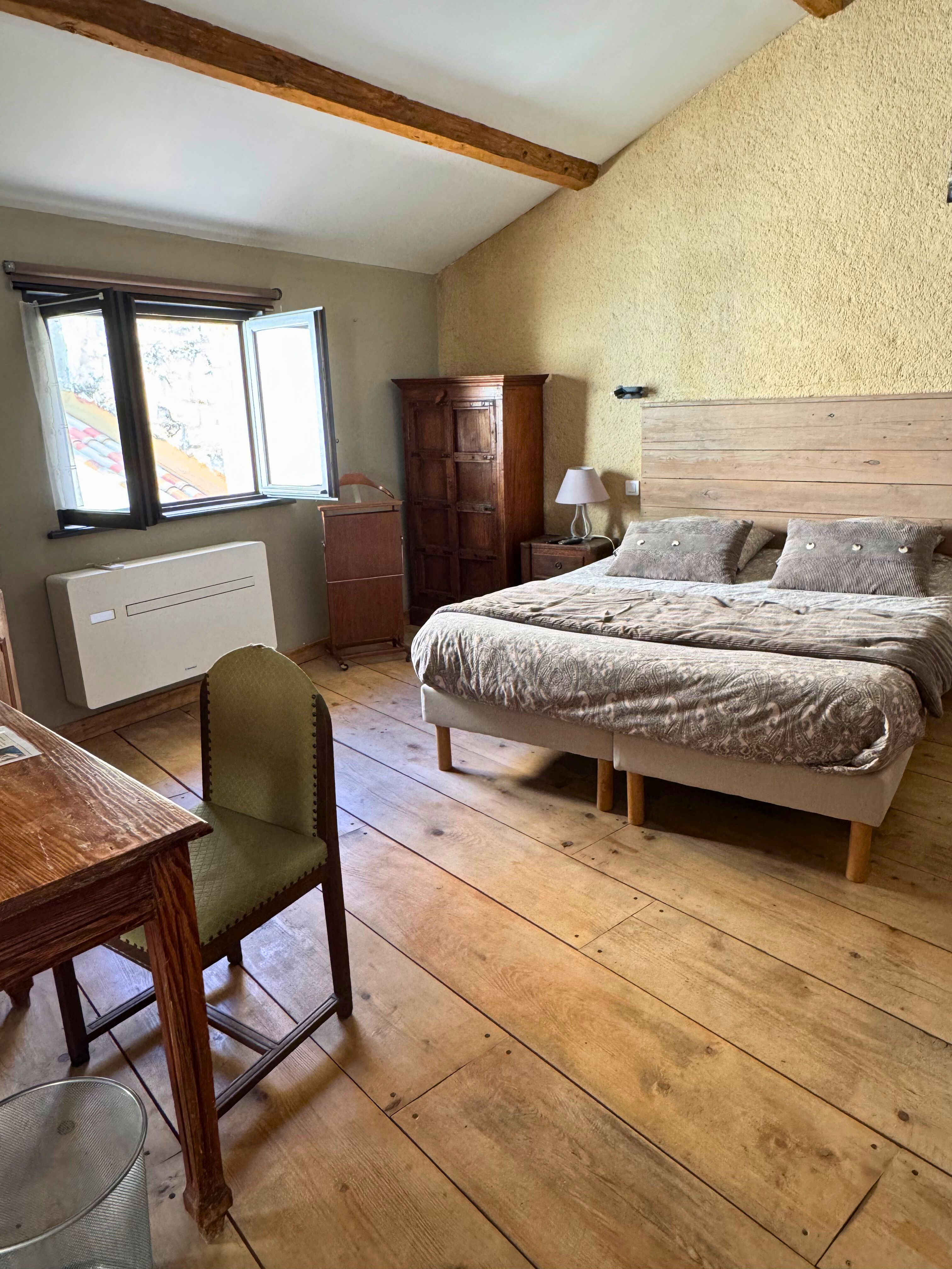 CHAMBRE FAMILIALECette chambre, pensée pour les familles en quête de calme et d'évasion, mêle confort, authenticité et douceur du Sud. Une salle de bain ainsi qu'une salle d'eau sont à votre disposition.